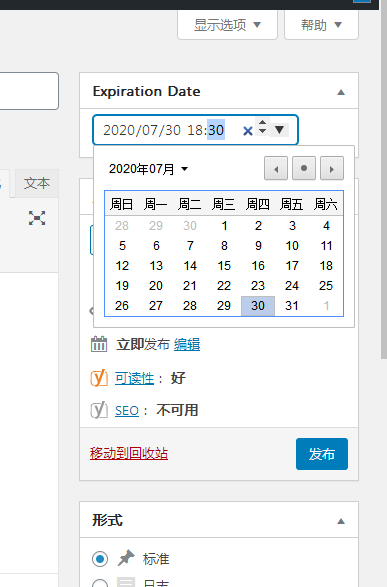 登录网站后台后,点插件-安装插件-搜索Post Expiration Date-安装-启用